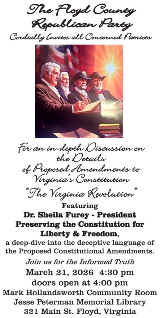 Paid for by the Republican Party of Floyd County. Not Authorized By Any Candidate Or Candidate's Committee. www.floydvagop.org
